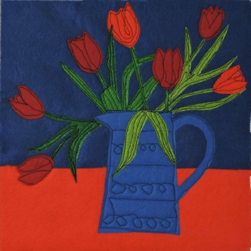 (Below) ‘Still Life in Contrasting colours’, stitched textile, by Pam Gilbert