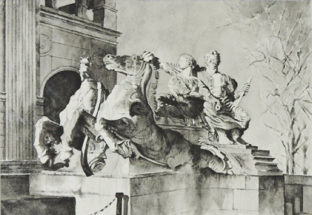 (Left below) runner-up, Contrasts’ section,’Neptune’ by Albert Hodge, Glamorgan Bldg, pencil by Lysbeth Davies